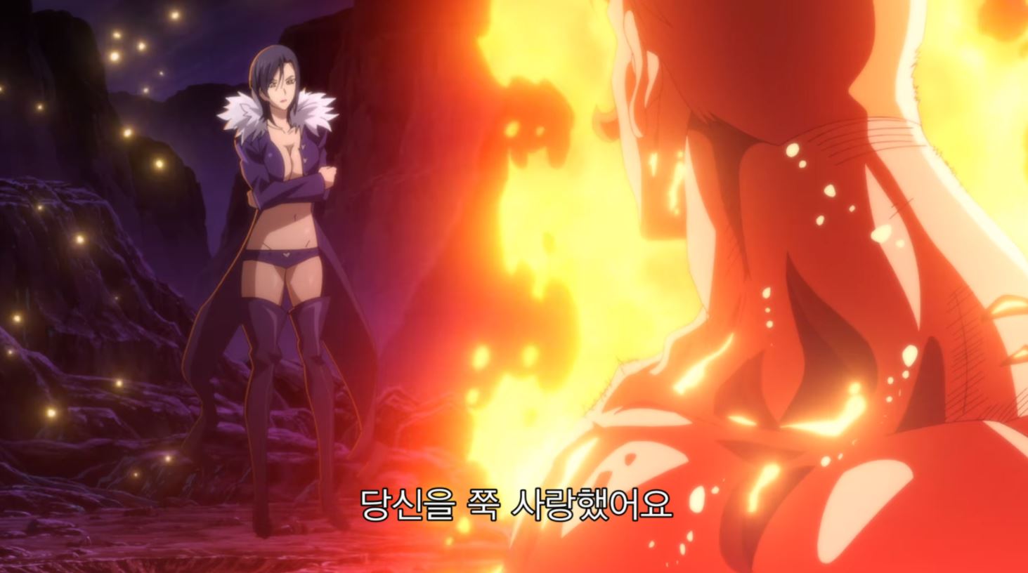 에스카노르는 죽기 직전에서야 사랑을 고백한다 ㅜㅜ 그리고 마냥 생각없을것만 같던 멀린은 그와 키스를 하면서 얼굴에 화상을 남기며 그를 기억하겠다고 한다. 정말 너무나도 아름다운 나는 절대 못하는 플라토닉 러브 ㅜㅜ이렇게 마신왕은 죽고 일곱개의 대죄 멤버는 한명이 죽게되며 대장정의 끝을 맺는다. 그 뒤로는 잠깐 긴장감좀 주려고 혼돈의 시대 어쩌고 하는데 그냥 아서왕 살려서 잠깐 캐스랑 좀 놀다가 마무리 된다. 마지막화에 나오는 트리스탄 역시 너무너무 졸귀탱이기에 꼭 볼 것을 추천한다.