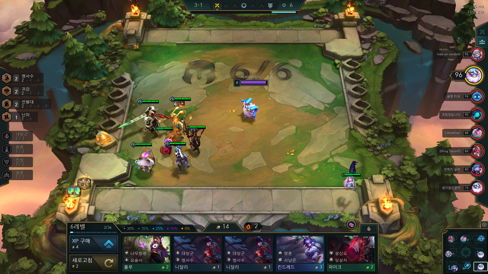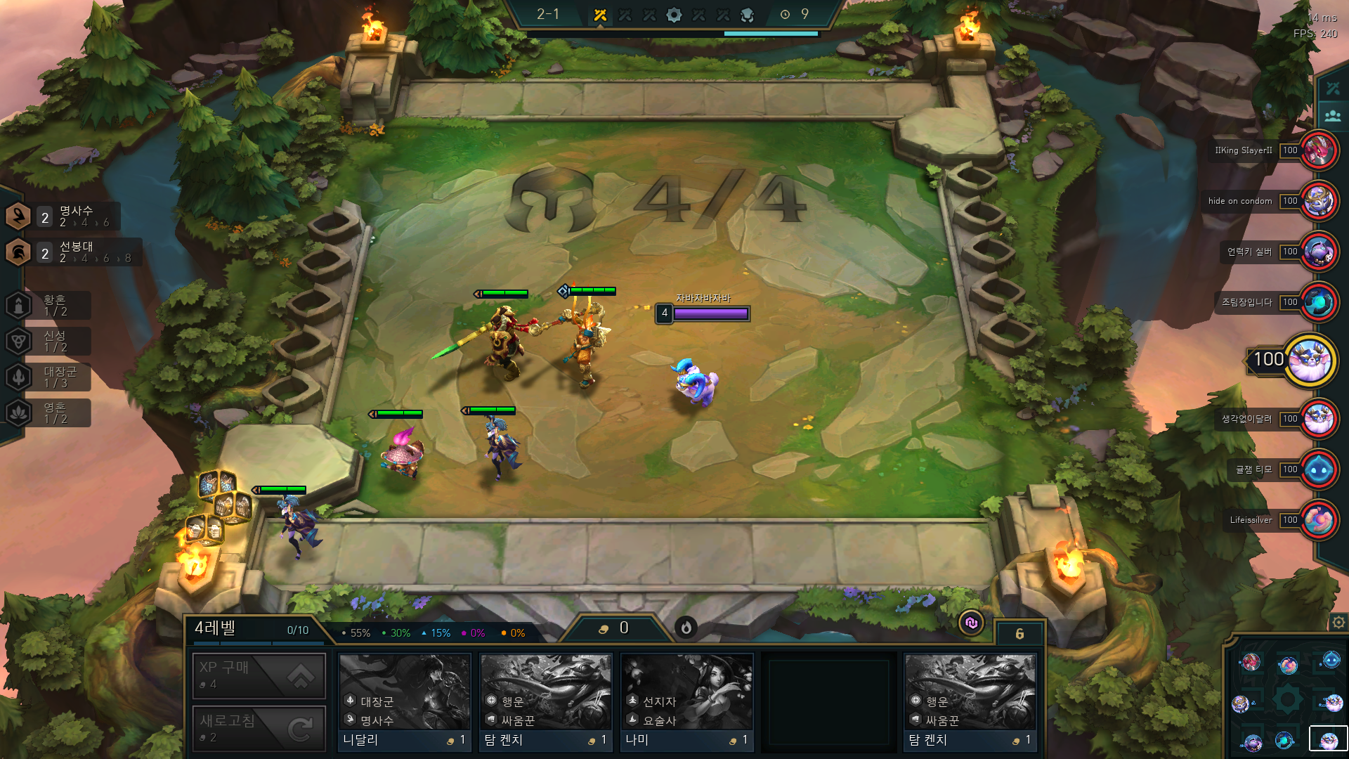 4코 유닛의 선받자 등장확률이 30%라서 그렇다. 6렙때는 2,3코 선받확률이 각각 45%.