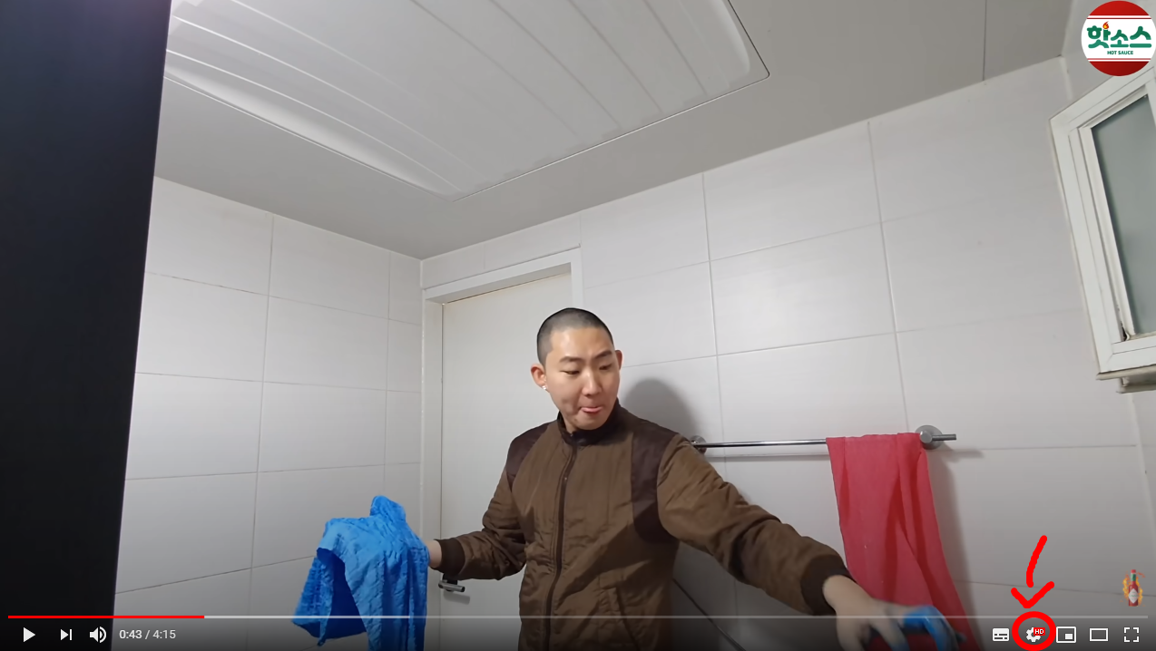 오른쪽 밑에 뻘겋게 hd써있는 하얀 톱니바퀴를 누르자.