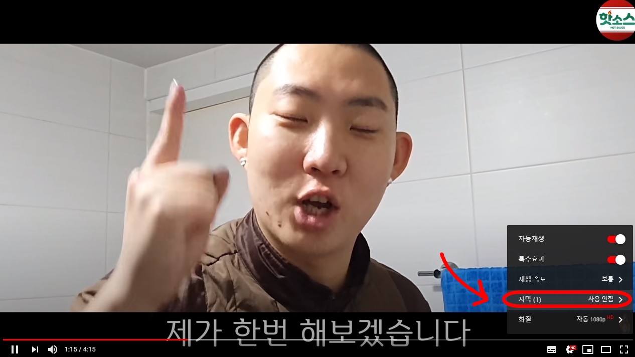 클릭하면 한국어(자동생성)이라고 뜨는데 자막 볼거면 그걸로 하면된다.
