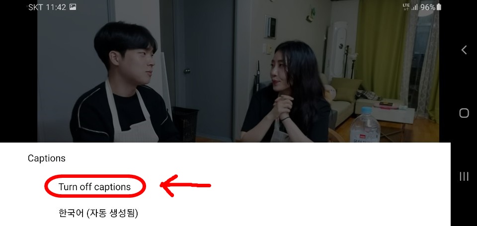 폰으로 볼때는 우측상단에 저렇게 쩜쩜쩜을 클릭하고 캡션 - 턴 오프 캡션누르면 끝.