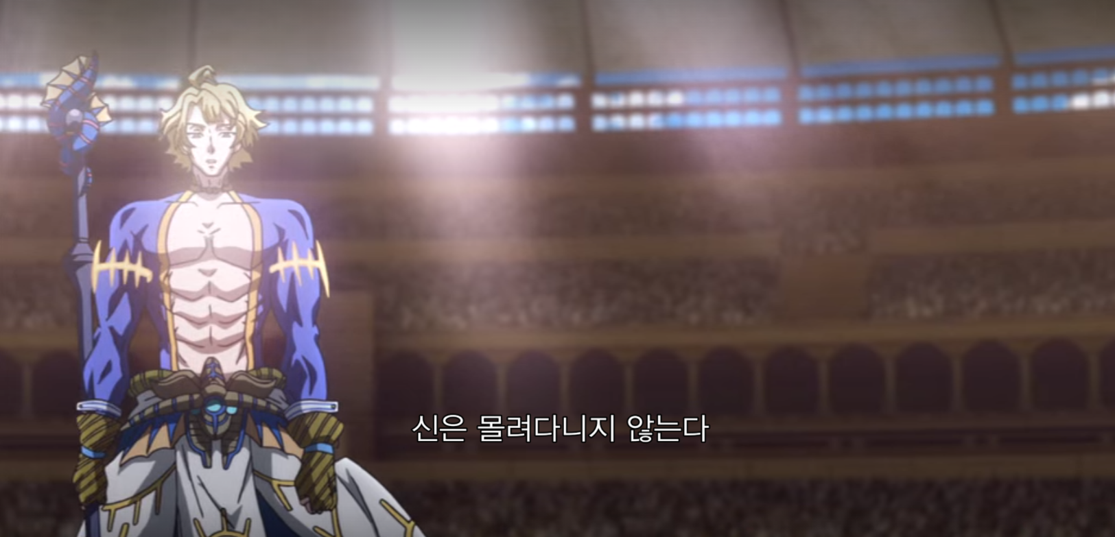 사실 이런 종류의 애니 혹은 드라마의 결론은 뻔합니다. 결국 인간이 이기게 되고 천년동안 문명을 더 이어나갈 수 있게 되겠지요. 애초부터 신과 인간의 대결은 말도 안되지만 그걸 소재로 했다면 당연히 인간이 신에 대항할 수 있게끔 이야기를 진행시켜야할텐데 작가는 그 과정이 지루하지 않게끔 1대1 대결이라는 구도라는 프레임속에서 각각의 전투마다 작은 컨셉을 만들었더라구요. 선수소개하는 시간이 길어서 그렇지 전반적으로 볼만한 작품입니다.